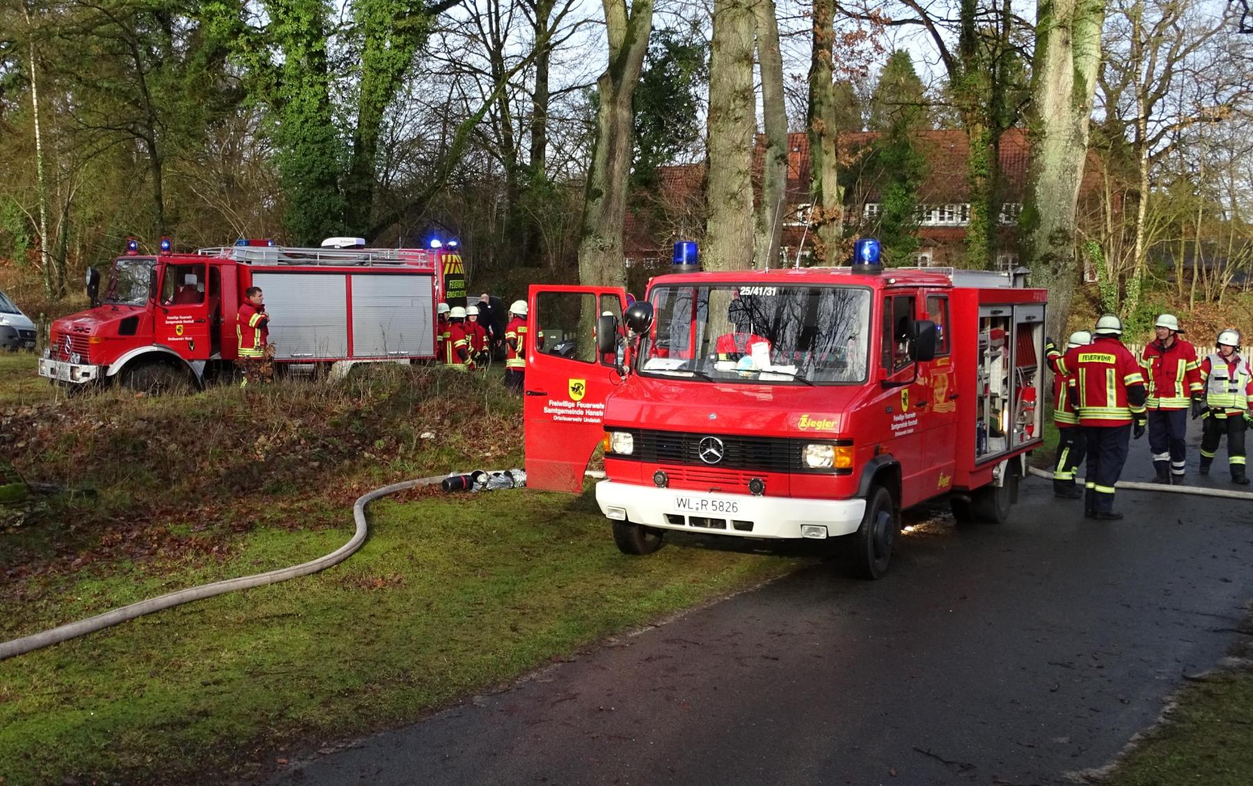 (jma) Undeloh. Am Samstagvormittag mussten die Feuerwehren aus Undeloh, Wesel und Egestorf sowie der Einsatzleitwagen der Feuerwehr Hanstedt zu einem Schornsteinbrand in den „Stillen Winkel“ nach Undeloh ausrücken. Beim Eintreffen der ersten Einsatzkräfte stieg dicker schwarzer Rauch aus dem Schornstein. Zwei Trupps gingen, mit umluftunabhängigem Atemschutz und mit Wärmebildkameras ausgerüstet, ins Gebäude. Zeitgleich wurde eine Wasserversorgung zum Einsatzort aufgebaut. Die Atemschutztrupps kontrollierten die Wärmeentwicklung des Schornsteins über alle Geschosse des Hauses. Ein Übergreifen des Brandes auf andere Gebäudeteile konnte glücklicher Weise nicht festgestellt werden. Nach etwa einer halben Stunde konnten die Wehren der Nachbarorte wieder in ihre Stützpunkte zurückkehren. Die Feuerwehr Undeloh blieb bis zur Begutachtung des Schornsteins durch den alarmierten Bezirksschornsteinfegers vor Ort. Verletzt wurde niemand.